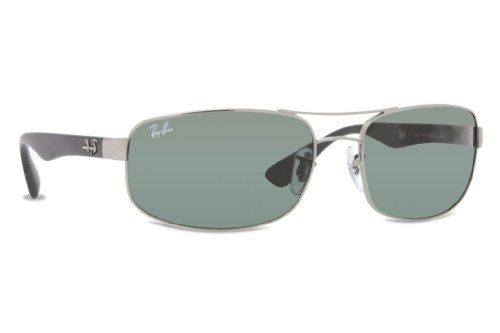 Ray-Ban Sunglasses,style RB3445 is a rx-able rectangular metal aviator wrap. The RB3445 features adjustable nose pads and plastic temples for maximum comfort. The Ray-Ban logo is featured on the temples. Ray-Ban Sunglasses have scratch/impact-resistant lenses. Size: 61-17-130 mm/64-17-130 mm
