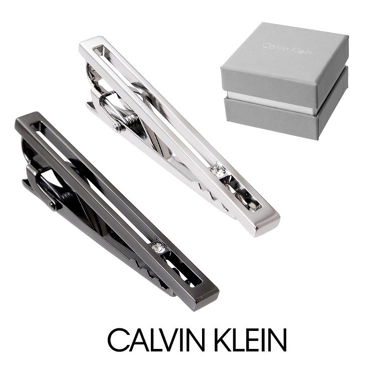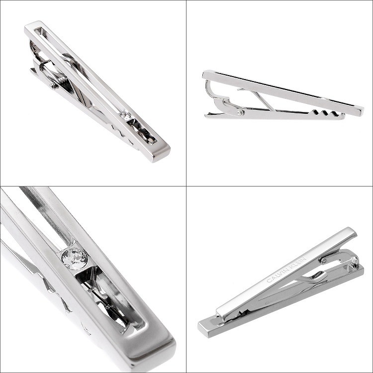 | Calvin Kleinらしいクールなデザインで、時代に影響されないセクシーな印象です。空洞の間にカットガラスが埋め込まれ高級感を引き出します。ネクタイのデザインも生きるネクタイピンです。 |