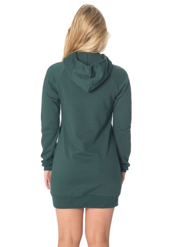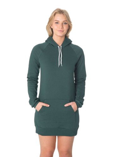This dress has a classic hoody pullover feel but has a feminine fit with extra length. Can be layered or worn as a dress. Unlike typical synthetic fleece, our California fleece is made of 100 percent extra soft ring-spun combed cotton, pre-laundered for minimal shrinkage. Extra thick for extra warmth, yet breathable.Feature