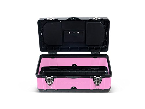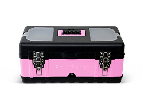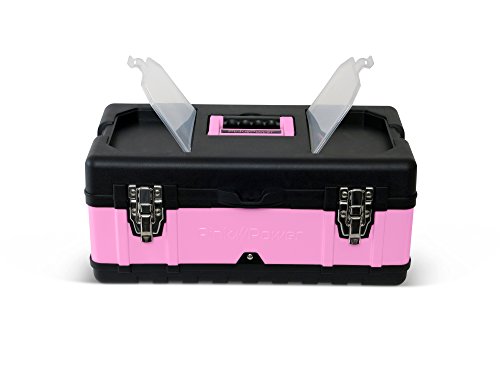 Pink Power’s portable 18” tool box is made from high quality, lightweight aluminum and comes with a durable plastic bottom to help prevent surface scratches. This tool organizer weights just under 5lbs and measures 18”l X 9”w X 7.5”d.