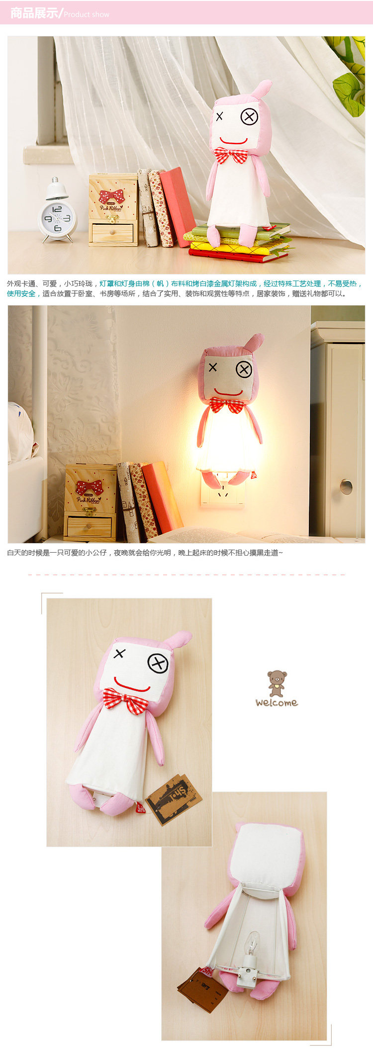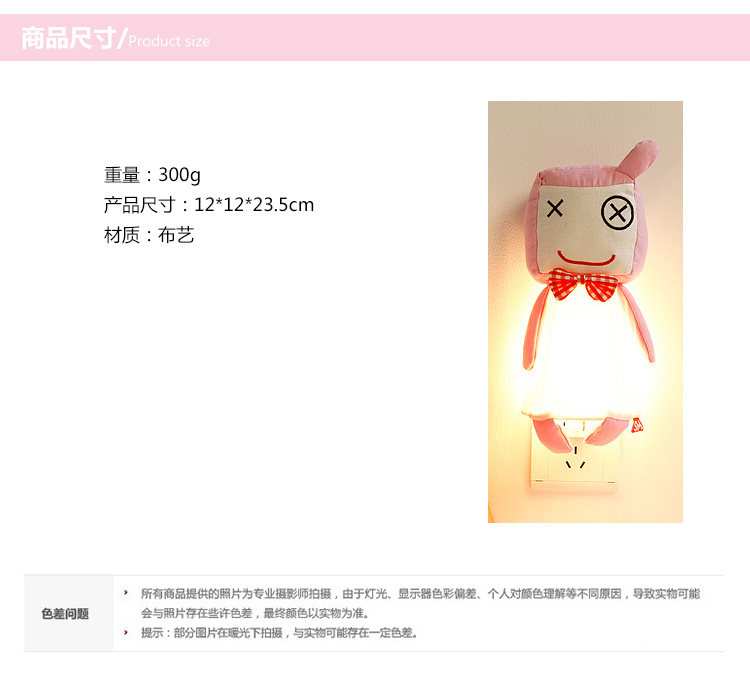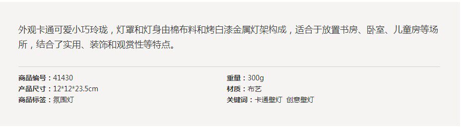 田园风格壁灯 简约卡通卧室床头灯 布艺特色壁灯