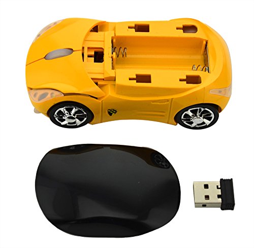 Welltop® Ferrari wireless mouse Computer Mice fashion super car shaped game mice 2.4Ghz optical mouse for pc laptop computer (Yellow)