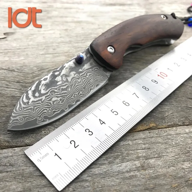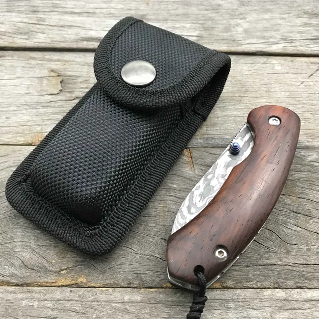 | [해외] LDT 토마스 접는 칼 다마스커스 블레이드 로즈 우드 핸들 전술 나이프 야외 생존 포켓 나이프 EDC 유틸리티 사냥 도구 |