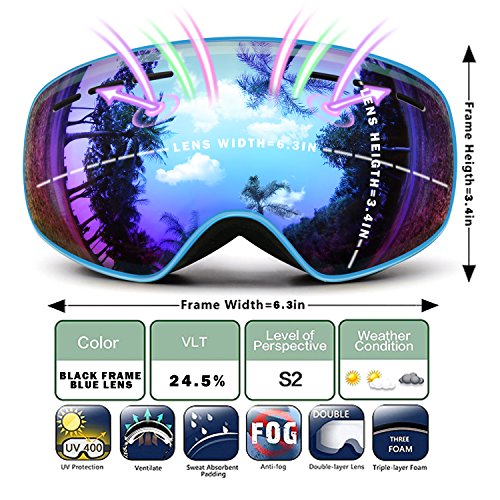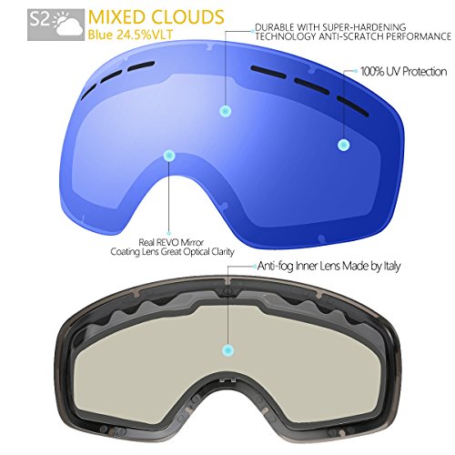 ❤Performance Dual-layer Lens]-Featured with anti-fog,anti- wind,and UV protection,anti-scratch,safety & impact- resistance,2X anti-fog performance.The outer lens comes with solid impact-resistance for its unique intensive technology,the inner lens is made by Italy with PRO long-lasting anti fog performance materials,full face real revo mirror coating reflective lens,100% UV Protection ,better protection for kids eyes .The top 6 vent holes enhance the air-flow and reduce fogging whe