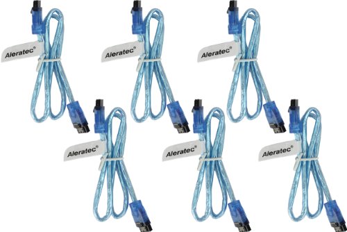 Aleratec SATA III 3 Cable 6gb, Transparent Blue, Straight to Straight with Clips, 20-Inch 6-Pack Combo