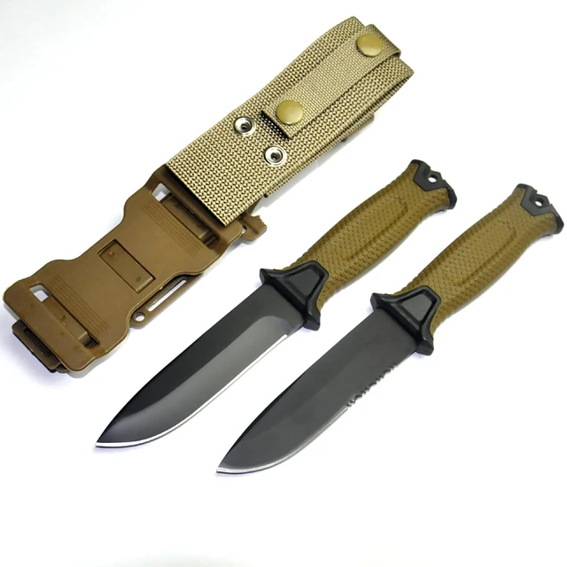| [해외] 캠핑 전술 나이프 59HRC 스틸 블레이드 사냥 서바이벌 나이프 구조 고정 칼 ABS 칼집 브라운 컬러 |