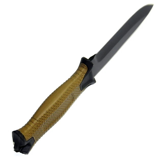 상품 내용 블레이드 길이: 95 미리메터 블레이드 두께: 4.2 미리메터 블레이드 폭: 3.0 센치메터 경도: 58-60HRC 블레이드 재료: 12C27 스틸 핸들 재료: 유리 섬유 표면: 블랙 코팅 색상: 브라운 무게: 350 그램 포장: ABS + 나일론 칼집 포장 상세