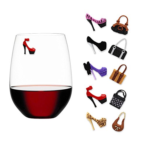 -. Title : HEELS & PURSES Magnetic Wine Glass Charms (Set of 10) by Claim Your Glass - Premium Drink Markers for Wine, Champagne, Beer, Cocktail Glasses - Includes Storage Case + Spare Magnet