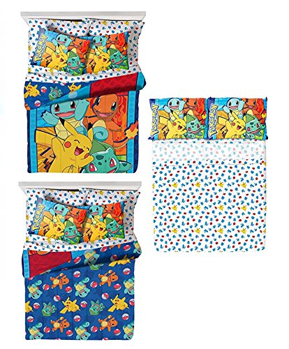 -. Title : Pokémon 4 Piece Kids Twin Bedding Set - Reversible Comforter, Sheet Set with Reversible Pillowcase