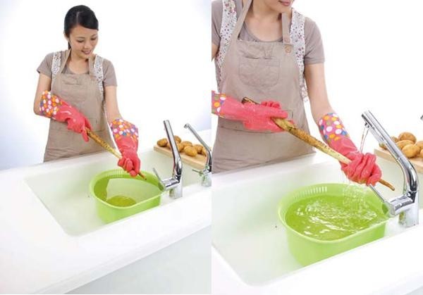 おしゃれでかわいくムキムキタイム!!スカートが付いて約40cmのロングタイプに。作業中の水の浸入をガード。ジャガイモ、ごぼう、ニンジン、ヤマイモ、サトイモ等の皮むきに。 |
