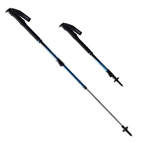Lever Lock/ Button - A fixed-length lower shaft quickly locks in place via quick release buttons. Adjustability is done with an innovative dual-cam lever on the upper shaft. Amazingly quick extension and collapse.