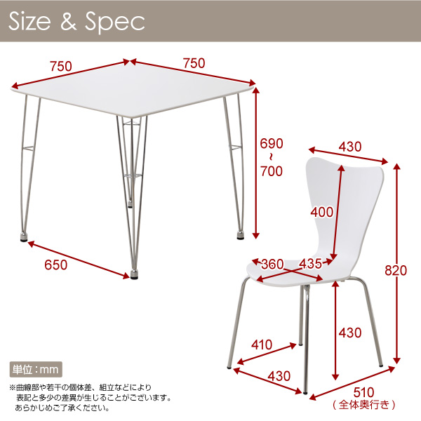 テーブル:ホワイト ダークブラウン、チェア2脚・6色(同色)からお選び頂けます