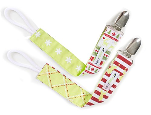 -. Feature : MERRY & BRIGHT COLLECTION - 2 Pack of trendy Pacifier Leashes. Our unisex baby pacifier clips for boys, girls, babies, and toddlers will keep your baby accessories off the floor this holiday season / WASHABLE, DURABLE & NON-TOXIC - Our bib clips are made from high quality cotton and nickel-free metal clips that are more durable than plastic pacifier clips. No BPA, No Pthalate, No Lead, No Latex / BEST PACIFIER CLIP - Our pacifier clip holders have premium clips that won't pull off. Our durable loop attaches to any baby pacifier including Avent Pacifiers, Soothie Pacifier Holder, Mam Pacifiers / UNIVERSAL FIT & FUNCTION - Best pacigrip, pacify holder for teething toys, stuffed animals, drool bibs, baby blanket clip for stroller cover. Perfect boy, girl Baby Shower Gift Set for Baby Registry / ZIGGY BABY PROMISE With over 2,300 seller reviews, we hold a 4.9 star rating because we care about customer service. We honor a No Questions Asked Return Policy so you can Add To Cart With Confidence