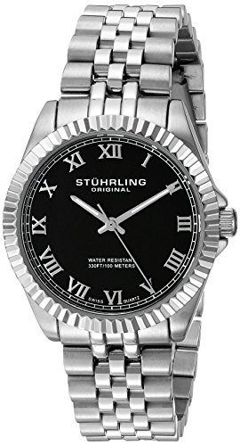 -. Binding : Watch -. Brand : Stuhrling Original -. Department : womens -. EAN : 0847988031967 -. Feature : Round stainless steel watch with coin edged bezel featuring Roman numerals hour markers on black logoed dial / Swiss-Quartz movement with analog display / Krysterna crystal dial window / Features decorated case back and five-piece link bracelet with fold-over clasp with double push-button safety closure / Water resistant to 100 m (330 ft): suitable for snorkeling, as well as swimming, but not diving -. IsAdultProduct : 0 -. Label : Stuhrling Original -. Manufacturer : Stuhrling Original -. Model : 599L.02 -. MPN : 599L.02 -. PackageQuantity : 1 -. PartNumber : 599L.02 -. ProductGroup : Watch -. ProductTypeName : WATCH -. Publisher : Stuhrling Original -. ReleaseDate : 2014-04-17 -. Studio : Stuhrling Original -. Title : Stuhrling Original Women's 599L.02 "Symphony Lady Coronet" Stainless Steel Watch with Five-Piece Link Bracelet -. UPC : 847988031967