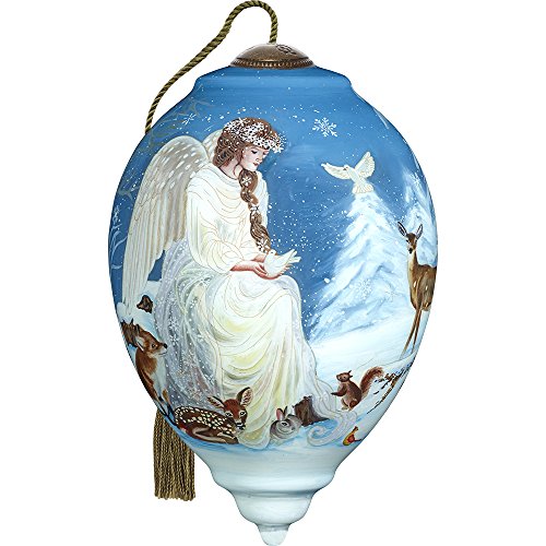 Precious Moments, Ne'Qwa Art 7171105 Hand Painted Blown Glass Standard Princess Shaped Winter's Woodland Angel Ornament, 5.5-inches