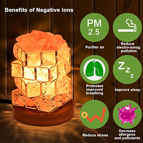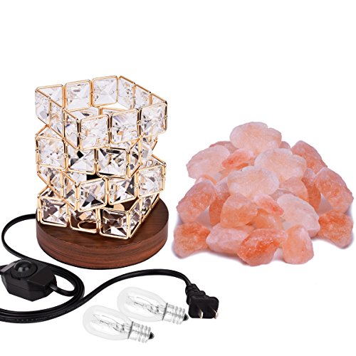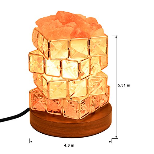 [Fashion Design as a Gift] 4 layers of Cube and wooden base made of this fashion salt lamp that can hold lots of salt crystal chunks. Dimmer switch allowing for the adjustment of light for a better user experience, all salt lamp approve FCC, CE, ROHS and the UL Certified cord, This lamp is the thoughtful and beautiful gift for your for college students, loved ones, office mates, friends, and parents.