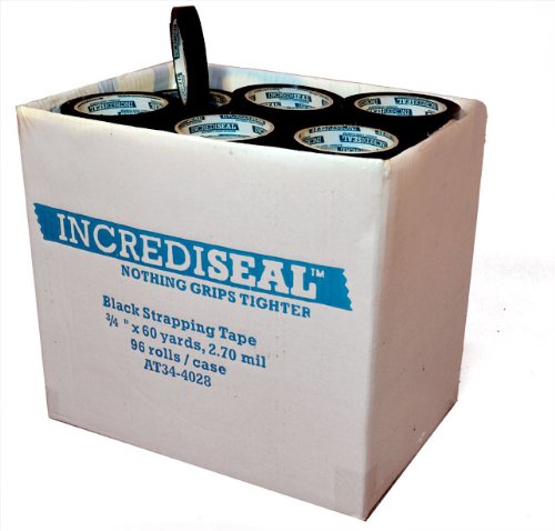 -. Binding : Tools & Home Improvement -. Brand : INCREDISEAL -. Color : Black -. Feature : Bonds firmly and removes cleanly from a wide variety of surfaces / Designed for general closure, reinforcing, strapping and bundling / Popular with shipping centers in known earthquake zones -. Label : INCREDISEAL -. Manufacturer : INCREDISEAL -. Model : UNPK.AT34-4028 -. MPN : 7661803 -. NumberOfItems : 96 -. PackageQuantity : 1 -. PartNumber : 7661803 -. ProductGroup : Home Improvement -. ProductTypeName : BUILDING_MATERIAL -. Publisher : INCREDISEAL -. Size : 3/4 Inch x 110 Yards x 2.70 Mil -. Studio : INCREDISEAL -. Title : INCREDISEAL 96 Rolls Strapping Tape, 3/4 Inch x 110 Yards x 2.70 Mil - Black