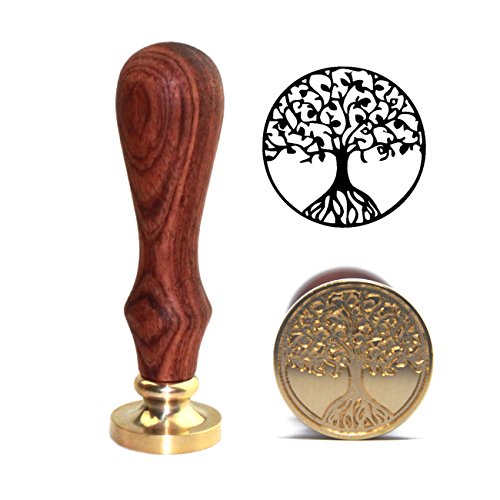 Botokon Sealing Stamps Vintage Retro Classic Removable Wax Seal Stamp Fancy Greetings with Wooden Handle (Life Tree)