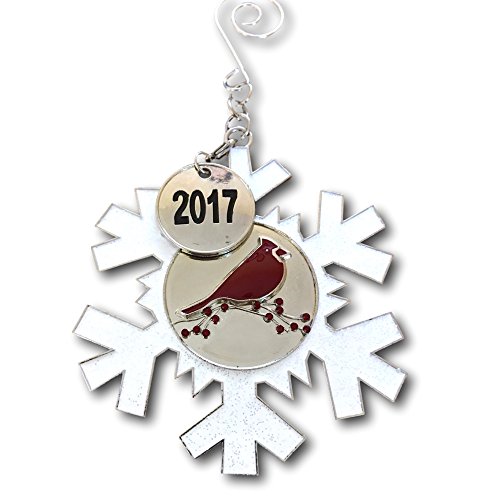 - CARDINAL MEMORIAL ORNAMENT. This is a beautiful red cardinal sitting on birch branches with red berries. The whole design is in the middle of a white, glittery snowflake ornament. Each one has a silver 2017 detachable charm. This is a great ornament for anyone who loves cardinals.