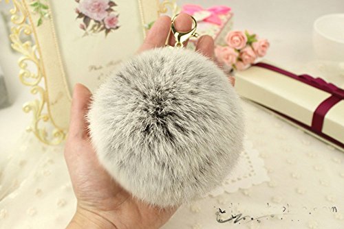 Cy3Lf Gold Plated Keychain Cute Genuine Rabbit Fur Ball Pom Pom Keychain for Car Key Ring Handbag Tote Bag Pendant Charm GRAY