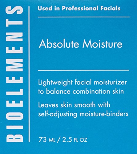 Studio : Bioelements Publisher : Bioelements Binding : Health and Beauty Product Description This combination skin moisturizer's intelligent self-adjusting hydrators balance combination skin's water-to-oil levels, so every area gets the exact amount of hydration it needs. Absolute Moisture absorbs quickly, leaving no oily feel or shine. Skin is smooth and soft, and lines are less visible. 0