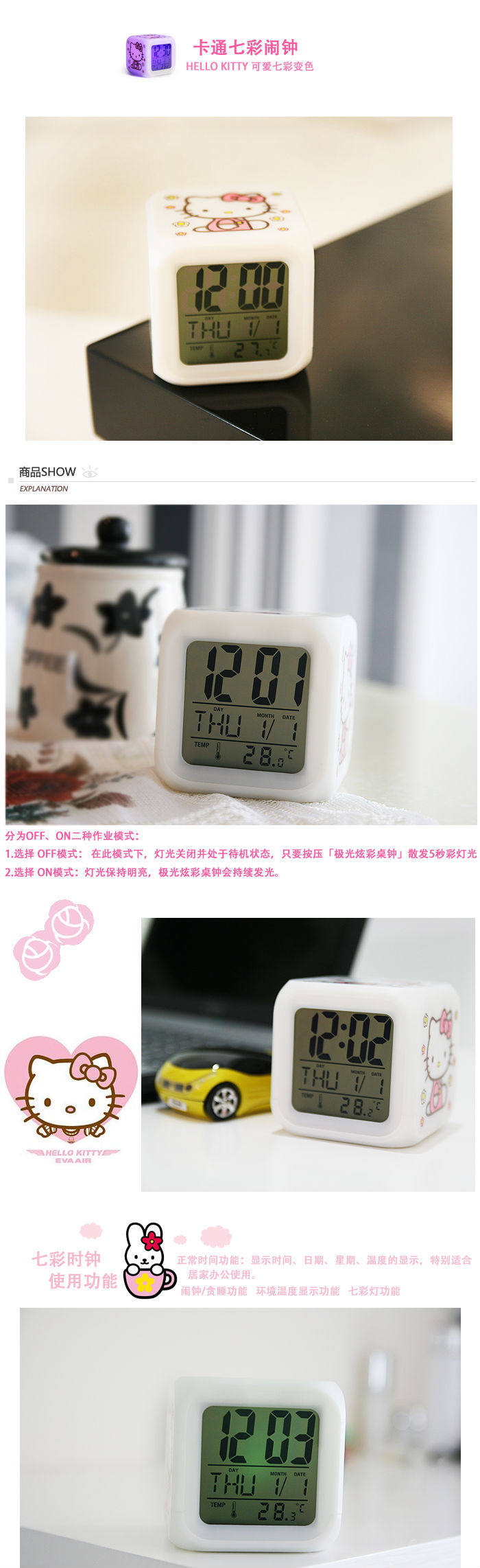 Alarm clock function ; able to transform the 7 different colors of light . Your mood will change with the light and get adjusted .