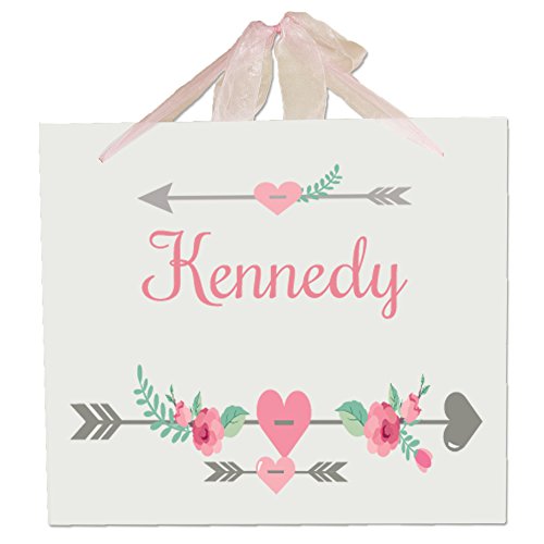 -. Title : Personalized Girl Tribal Arrows Nursery Wall Hanging Plaque with pink ribbon