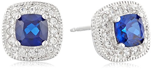 -. Feature : Hand-finished stud earrings crafted in .925 Sterling Silver / Classic lab-created Blue Sapphire cushion-cut stud earrings; lab-created White Sapphire halo / Rhodium plated for continued shine and durability; tarnish resistant; butterfly backs / Lab-created gemstones have the exact chemical composition of genuine gemstones, but without the flaws inherent in natural stones / September birthstone; Packaged as gift; Imported