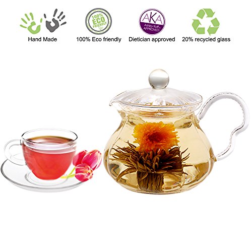 -. Feature : Fairy comes with a removable glass strainer / Specially designed Non-Dripping feature / Can be used as a teapot for blooming teas or loose leaves, hot teas or iced teas; It can also be used as a pitcher! All in one! / Teacup w/saucer F 5 oz. capacity allows you to finish a perfect cup of tea without getting cold / Dishwasher Top rack safe Or hand clean; 20 oz. capacity perfect for one or with a company