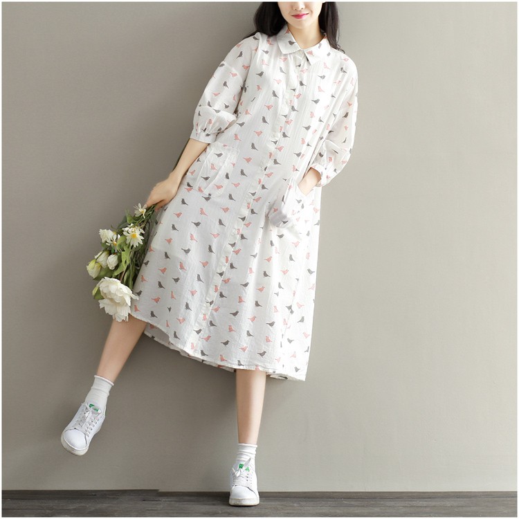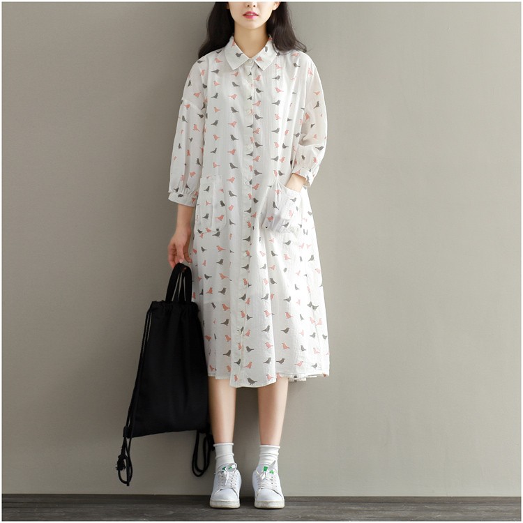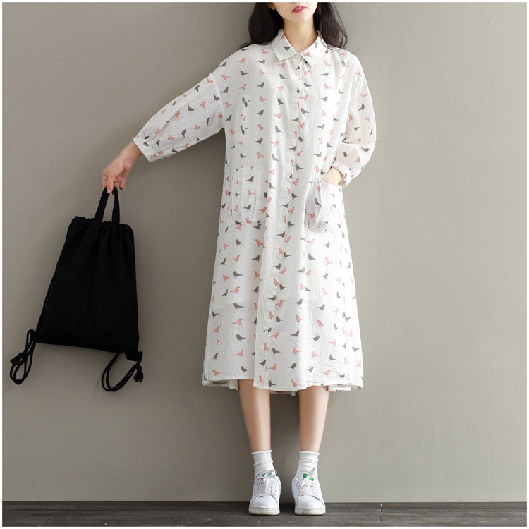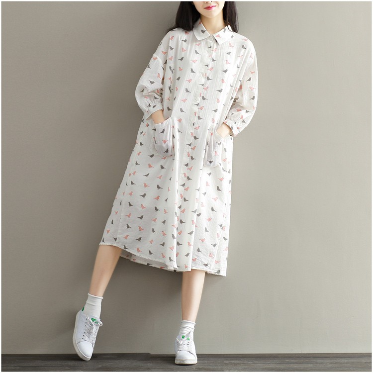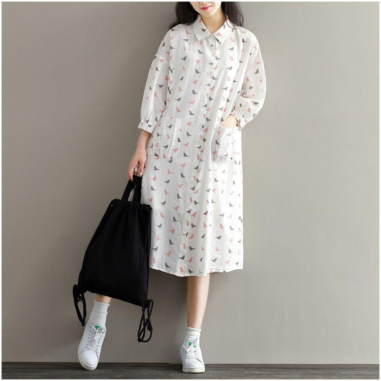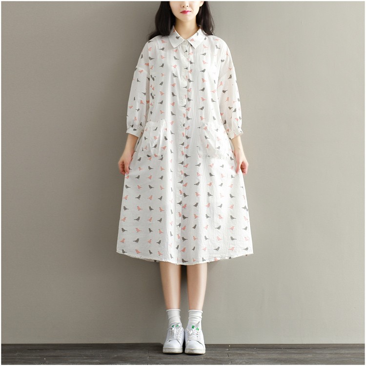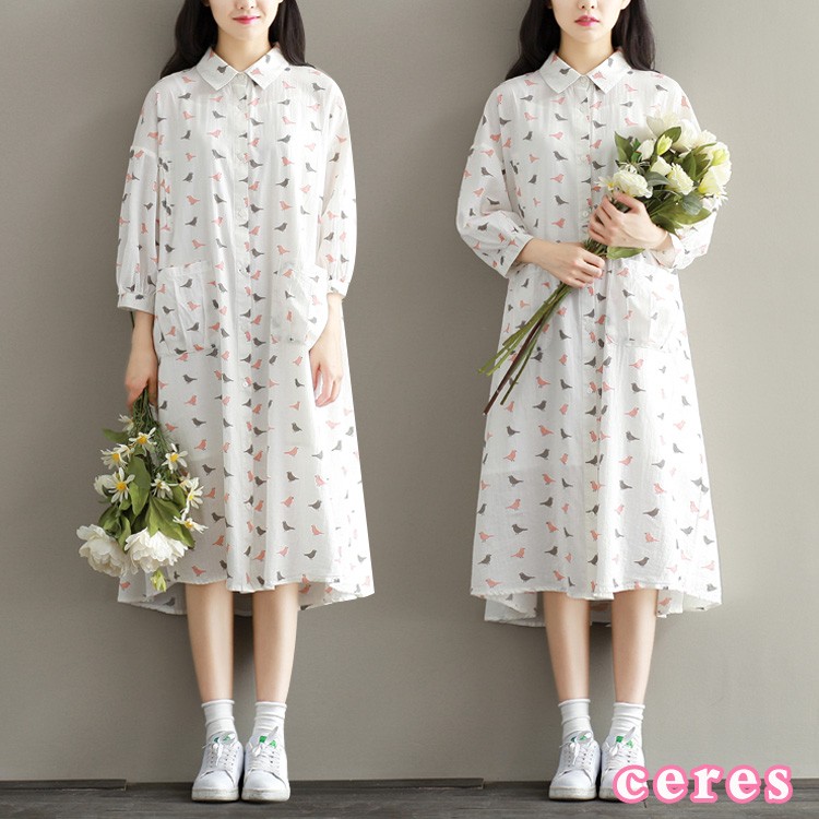 【製品仕様】■商品名ワンピース レディース服 長袖 40代 30代 50代 カジュアル きれいめ ゆったり シャツワンピ 鳥■商品説明・可愛い鳥プリントの長袖シャツワンピース。・家事に便利な大きめポケット付き・前開きなので、授乳中ママにもおススメ。■サイズL 2L■素材 綿麻■色#1ホワイト「検索キーワード」長袖ワンピース チュニック レディース ひざ丈ワンピース ワンピース ひざ丈 長袖 ミモレ丈 とり 鳥 水玉 シャツワンピース 体型カバー 産後 授乳服 マタニティ服