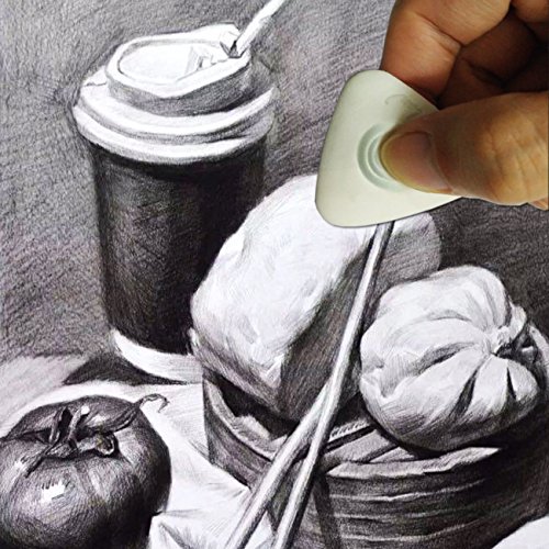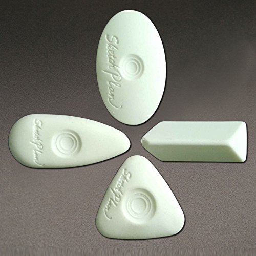 Different Shapes for More Fun- Pack of 4 High light erasers for sketching pencils eraser and graphite pencils eraser with triangular, elliptic, and rhombic and pebble shape. 4 of these shape are fit comfortably in your hand.