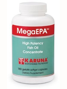 High potency Arctic fish oil concentrate for maximum Omega-3 protection The omega-3 fatty acids, eicosapentaenoic acid (EPA) and docosahexaenoic acid (DHA), of cold-water fish have been linked by numerous studies with platelet function and lipid metabolism that are consistent with heart and vascular health. During September, 2004, the FDA announced that, ""Supportive but not conclusive research shows that consumption of EPA and DHA omega-3 fatty acids may reduce the risk of coronary heart disease."" One serving of Karunas OmegaPlex provides 600mg of EPA and DHA omega-3 fatty acids. [See nutrition information for total fat, saturated fat and cholesterol content.] Neurobiological research has indicated that the large amounts of EPA and DHA found in the brain play vital structural and functional roles in the nervous system. MegaEPA is a refined concentrate of natural marine oils which are a rich source of cholesterol-free polyunsaturated omega-3 fatty acids as stable esters. MegaEPA provides the highest omega-3 fatty acid concentration of any fish oil supplement commercially available.