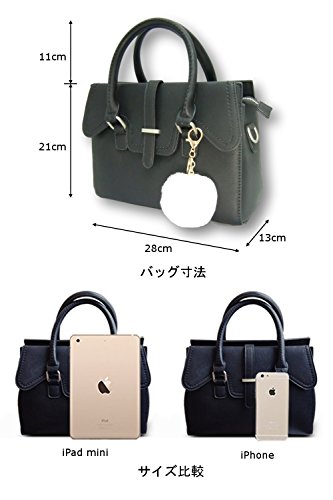 -. Feature : ファーチャームの付いた 2WAY バッグ (ハンドバッグ、ショルダーバッグ)のご紹介です。普段使いに丁度良い大きさですので、ハンドバッグでも、ショルダー用ストラップを取り付けてショルダーバッグでも、便利にお使いいただけるお役立ちアイテムです。 / 【サイズ】 高さ 21㎝ × 幅(上部)27cm(下部)28cm × マチ 13cm 持ち手長さ 11cm ショルダー用ストラップ長さ:105~118cm 【重さ】 850 g、 バッグ外側に1つのファスナーポケット、内側には2つのファスナーポケットと2つのオープンポケットがあり、小物類をきれいに整理して収納できる使い勝手の良いバッグです。 / 【素材】PUレザー(フェイクレザー) 【カラー】 ブラック、グレー、ピンク (全3色) 【付属品】 ショルダー用ストラップ / 大きな白いファーのチャームが可愛らしく、また前面にはベルトのついたカバーが付いた上品でおしゃれなバッグです。素材には柔らかな風合いの高級フェイクレザーを使用しておりますので、様々なシーン(誕生日、奥様・彼女さんとの記念日のプレゼント、デート、オフィスへの通勤、旅行、カジュアル、デートなど)で マルチ に使えます。 / iPad mini を入れることができる実用的な大きさです♪ メインコンパートメントは2つに仕切られていて、お財布、お化粧品、スマホ、など、必要なものがスッキリしまえてスマートにお使いいただけますよ!