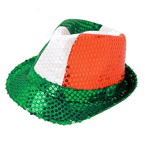 -. Binding : Toy -. Brand : Rhode Island Novelty -. ClothingSize : One Size -. Color : Green / White / Orange -. Department : unisex-adult -. EAN : 0097138803412 -. Feature : One size fits most adults / Tri color sequin design / Approximately 22" around the inside of the hat / Fedora styled hat -. Label : RHODE ISLAND NOVELTY -. Manufacturer : RHODE ISLAND NOVELTY -. Model : SSIRSFE -. MPN : RISSIRSFE -. NumberOfItems : 1 -. PackageQuantity : 1 -. PartNumber : RISSIRSFE -. ProductGroup : Toy -. ProductTypeName : TOYS_AND_GAMES -. Publisher : RHODE ISLAND NOVELTY -. Size : One Size -. Studio : RHODE ISLAND NOVELTY -. Title : Rhode Island Novelty Sequined Irish Fedora -. UPC : 097138803412