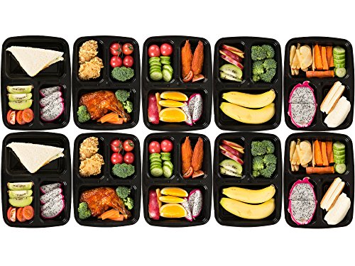 STACKABLE, SERPERATED, EASY TO CARRY OUTDOORS-10 pack of portable microwave restaurant food containers with 3 compartment design; Minimum shell space & stackable for easy storage in a lunch bag. Great sizes which fit inside your cooler for that perfect picnic. With this bento lunch tray, packing and transporting food is quick and easy.