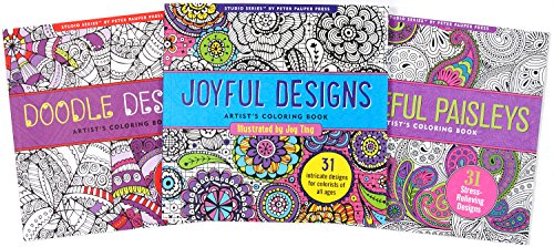 -. Binding : Toy -. Brand : Peter Pauper Press -. EAN : 9781441320810 -. Feature : Color 31 full-page designs! Meditative patterns are complex yet calming. / Heavyweight paper is superior to that of other coloring books. Designs are P.R.Inted on only one side of a page -- no bleed-through. / Each page is micro-perforated for ease of removal and display of your artwork. / Acid-free paper helps preserve your work. / Each book measures 9-1/2 inches wide by 9 inches high. For artists and colorists of all levels. -. ISBN : 1441320814 -. Label : Peter Pauper Press -. Manufacturer : Peter Pauper Press -. MPN : 9781441320810 -. PackageQuantity : 1 -. PartNumber : 9781441320810 -. ProductGroup : Toy -. ProductTypeName : TOYS_AND_GAMES -. Publisher : Peter Pauper Press -. Studio : Peter Pauper Press -. Title : Adult Coloring Book Value Pack (Doodle, Joyful & Paisley) 3 Pack