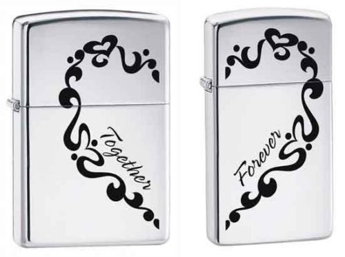 -. Title : Zippo "Together Forever" 2 Piece Set High Polish Chrome Lighters, 0465