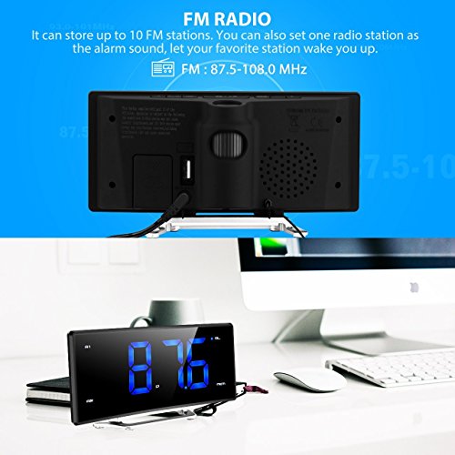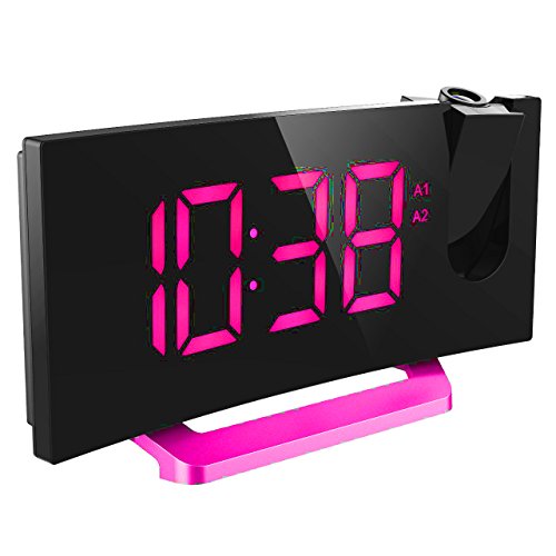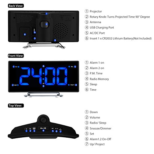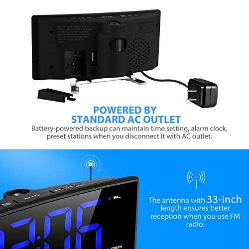 2-INCH ARC-SHAPED LED DISPLAY WITH DIMMER: The blue and big numbers on the large display are easy to read from a far distance and it has 3 brightness levels: bright, dim, off. The adjustable dimmer enables you to set the display to a brighter setting in daytime and softer one at night. You can also turn off the display and leave the projection on. Arc-shaped LED display allows you to see the time from multi-angle.