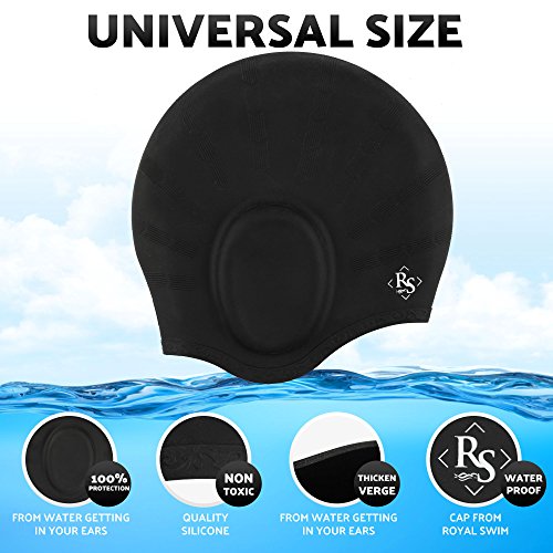Royal Swim Cap For Long Hair - Waterproof Premium Silicone swimming Cap for Women & Men - Special Shape for Effective Ear Protection - Keeps Hair Dry - with Nose Clip & Ear Plugs - Black, Blue, Pink