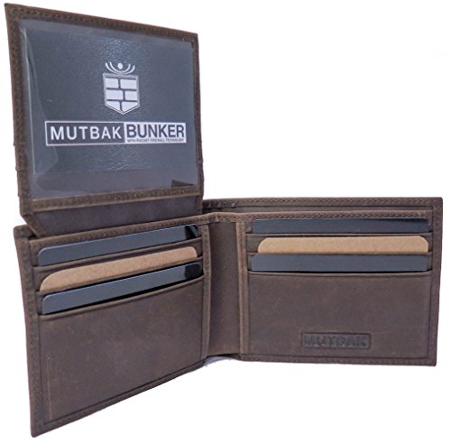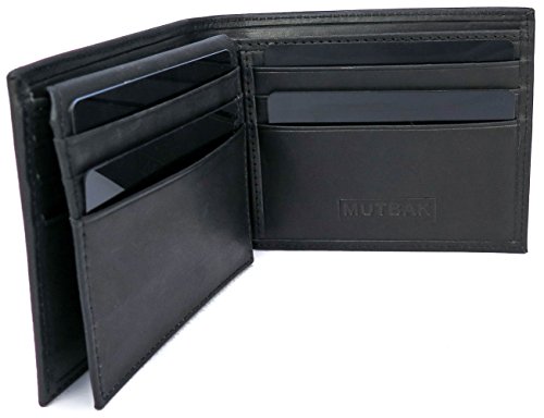 -. Binding : Apparel -. Brand : Mutbak -. Color : Black -. Department : mens -. Feature : Bifold Wallet with RFID Blocking Lining for each of 11 Card Slots plus ID Window Provides Places and Protection for Every Credit Card, Business Card, and ID Card You Will Need. / Split Billfold Area to Separate Large and Small Bills or Money from Receipts / Highest Quality Top-Grain Vegetable Tanned Leather Available, Soft and Builds Character as it Ages / Flip up ID Window with Thumb Hole - Wallet Measures in at 4 3/8" X 3 3/8" X 3/4" / One-year unconditional warranty for all Mutbak products. Here is what some of our customers have to say: "The wallet successfully blocks the RFID card it amazed me a bit on how well it worked.", "Overall, I really like this wallet. It met my need for something small, but pleasing to the eye", "Excellent quality - fantastic workmanship!" -. ProductGroup : Apparel -. ProductTypeName : ACCESSORY -. Size : One Size -. Title : RFID Blocking Bi-fold Leather Wallet