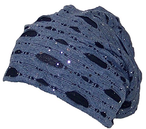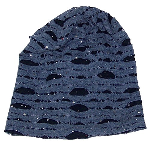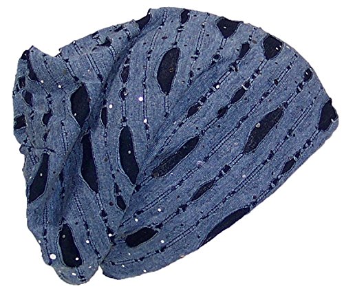 David & Young Womens Torn Design W/Sequins Lightweight Knit Beanie (One Size)