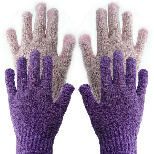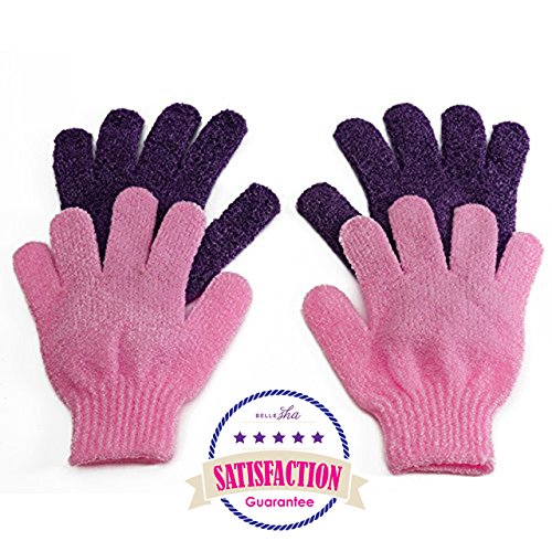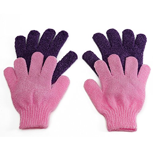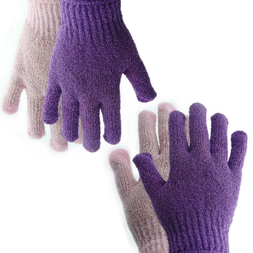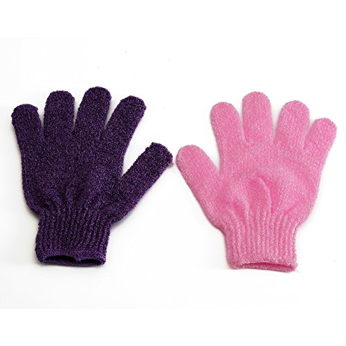 BelleSha Exfoliating Bath Gloves Pink and Purple 2 pairs