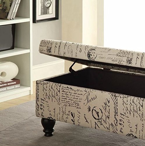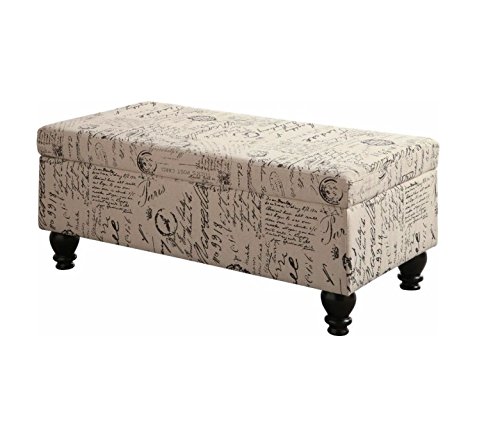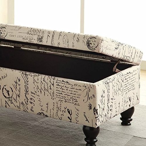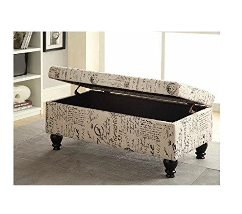 -. Feature : You will fell in love with this storage bench - it is absolutely perfect in the room! It is also sturdy and offers great room for storage. / Charming contemporary style - It is not too white, not too tan - just the perfect neutral. / The perfect solution to addressing storage needs in a sitting room/master bedroom / Cushions are included. / Overall: 19" H x 42" W x 22" D Overall Product Weight: 35lbs