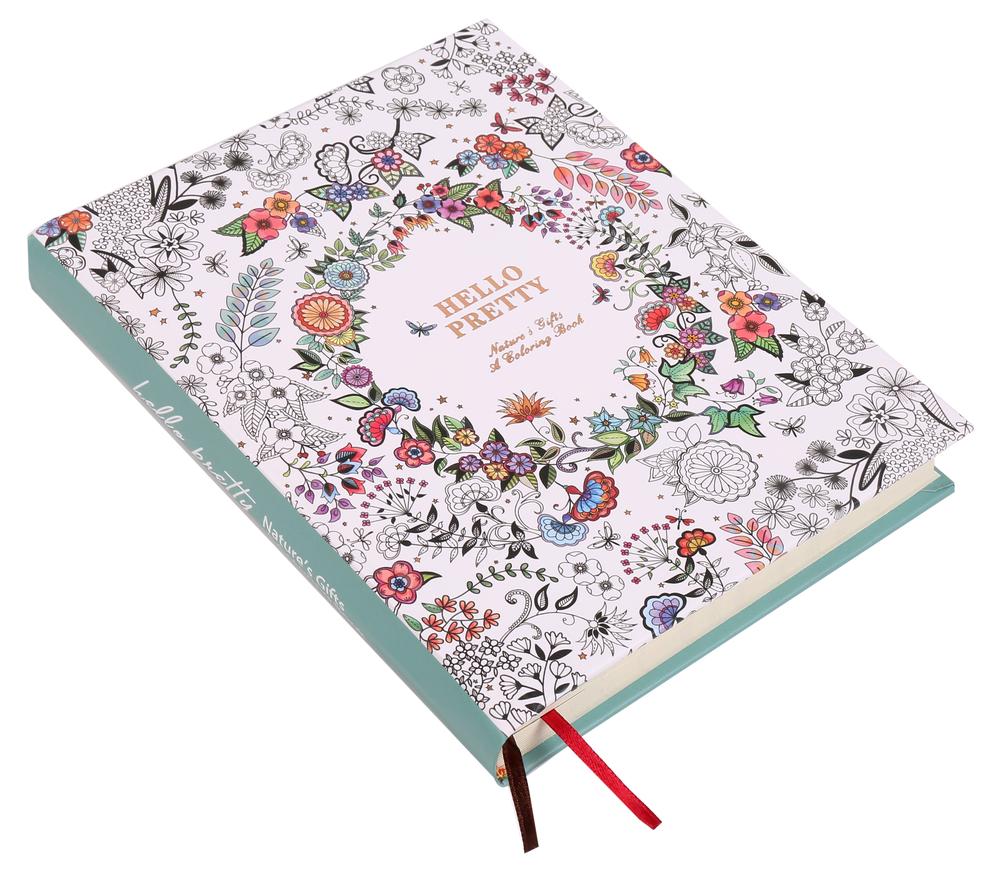 ・ページを開けば塗り絵のようなカラフルな美しい挿絵が入っています。2本の色違いのしおり紐が付属しておりますので整理しやすく便利です。