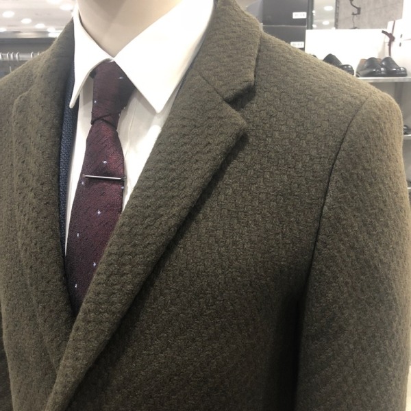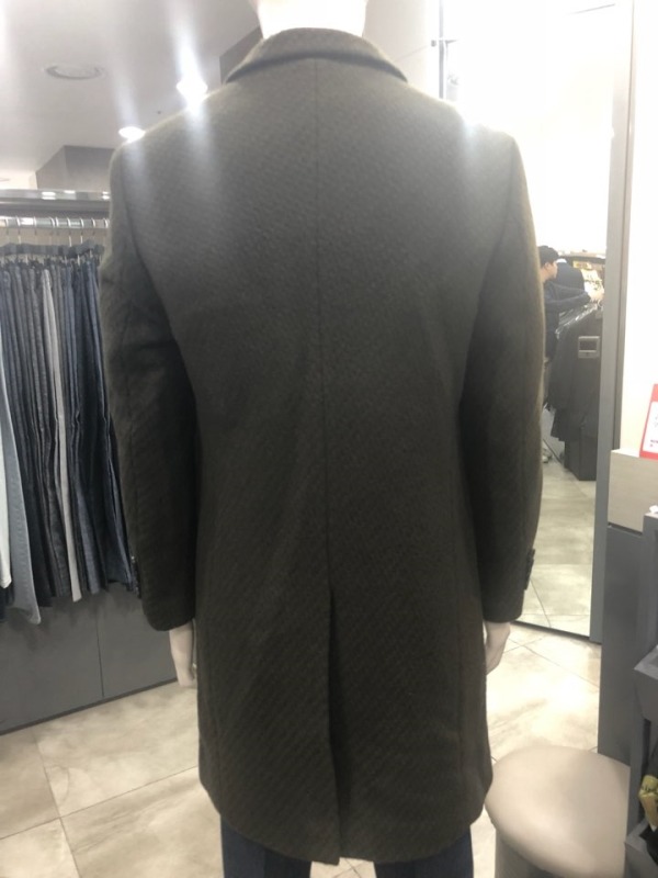 와플짜임 2버튼 싱글 체스터 코트 네이비,카키 2가지 색상 조직감이 있는 소재를 사용하여 캐쥬얼한 연출과 슈트 연출에 좋은 아이템95CM기장으로 적당한 길이감과 등판부부 고주파 퀼팅 사양으로 보온성이 보장