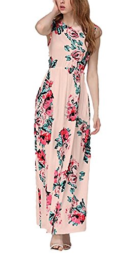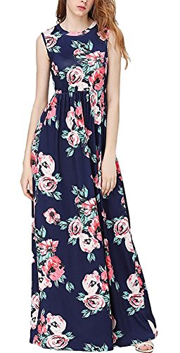 Wearlove Women's Floral Print Round Neck Sleeveless Long Maxi Casual Dress