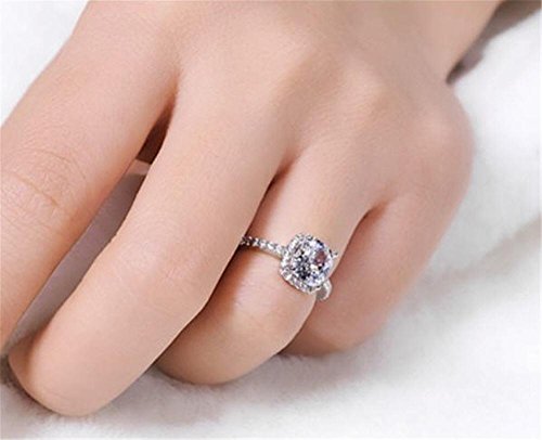 -. Feature : Contemporary halo designer ring set, featuring a 2 carats 7x8mm) radiant cut simulated diamond, framed by sparkling 1mm stones. The center piece is slightly raised so that you can fit in any band underneath to wear together. (Ring and band set is available in another listing.) / The main stone is a top grade simulated diamond, with 74 facets. Hence, it is full of fire with explosives of sparkles. It sparkles even in dim light, just like a real diamond, which is something that CZ and crystal could not. The side stones are all brilliantly cut with hearts and arrows cutting. / With excellent craftmanship and with stones cut like real diamonds, this ring is very realistic looking. / Metal: Stamped Solid 925 Sterling Silver. Plated with anti tarnish platinum for extra shine and protection. It will not turn your finger green like cheaply plated rings. / Comes in formal ring box and company's tag.