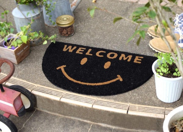 敷き詰められた繊維が靴の汚れを落としてくれるので、玄関やベランダなどに最適です。裏面はPVC素材を使用しているので滑りにくく、お手入れも簡単です。人気のスマイル柄です。