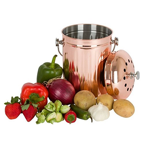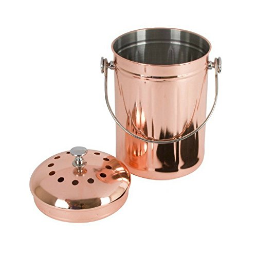 Make everything count Food scraps comprise up to 30% of what we throw away. Composting keeps it out of landfills and prevents release of harmful methane gas. Our countertop compost bin, with its odor-sealing lid and charcoal filters, lets your collect potato peels, spaghetti and other leftovers without having unpleasant odors wafting through your home. You can even use the finished product to make "compost tea", a nutrient-rich solution to add to your house plants or herb pots. You can also carry the pail by its handle outdoors and add the remnants to your vegetable garden or flower bed. Elegant, efficient design With its eye-catching copper-plated exterior, our tabletop compost bin blends in seamlessly with your kitchen decor. Its gleaming, sophisticated curves and compact size make it the most elegant and unobtrusive of all your kitchen accessories. For the environmentally conscious newlywed couple, it would be a thoughtful and stylish housewarming or wedding gift. We include 4 activated charcoal filters that will provide a full year of odor-neutralization. Leakproof, unbreakable and easy to maintain This resilient compost bin features a 100% stainless steel interior that resists corrosion and leaks. It collects food scraps on your kitchen counter without attracting pests or emitting odors. Unlike ceramic crock compost pails, our compost bin won't break or chip, adding to its long-lasting durability. It can be used with or without compost bags, and it is dishwasher-safe for easy clean-up. Turn food scraps into nutrient-dense garden soil. Add our Stainless Steel Indoor Compost Bin to your cart today. 0 |