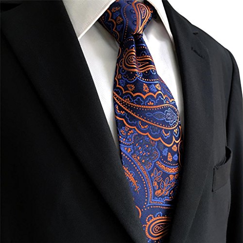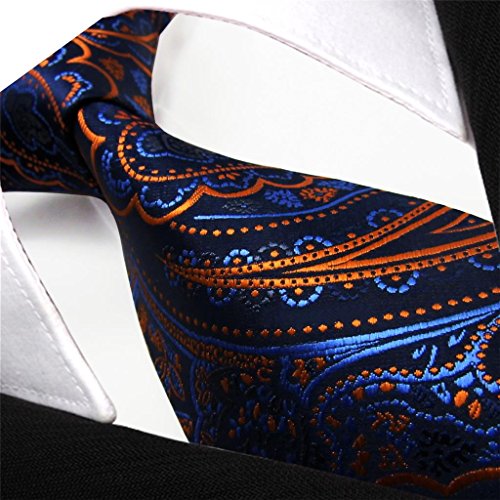 Shlax&Wing Shlax & Wing Extra Lang Herren Mehrfarbig Paisley Navy Orange Seide Krawatte Classic For Manner